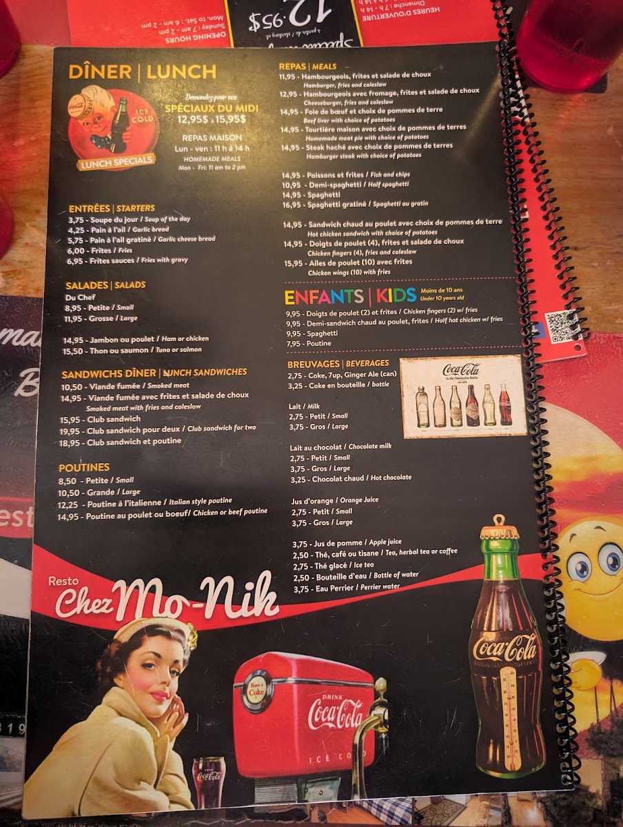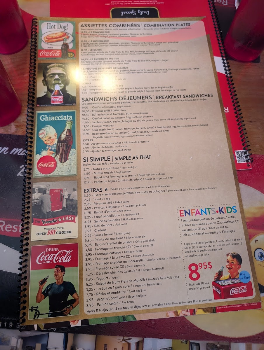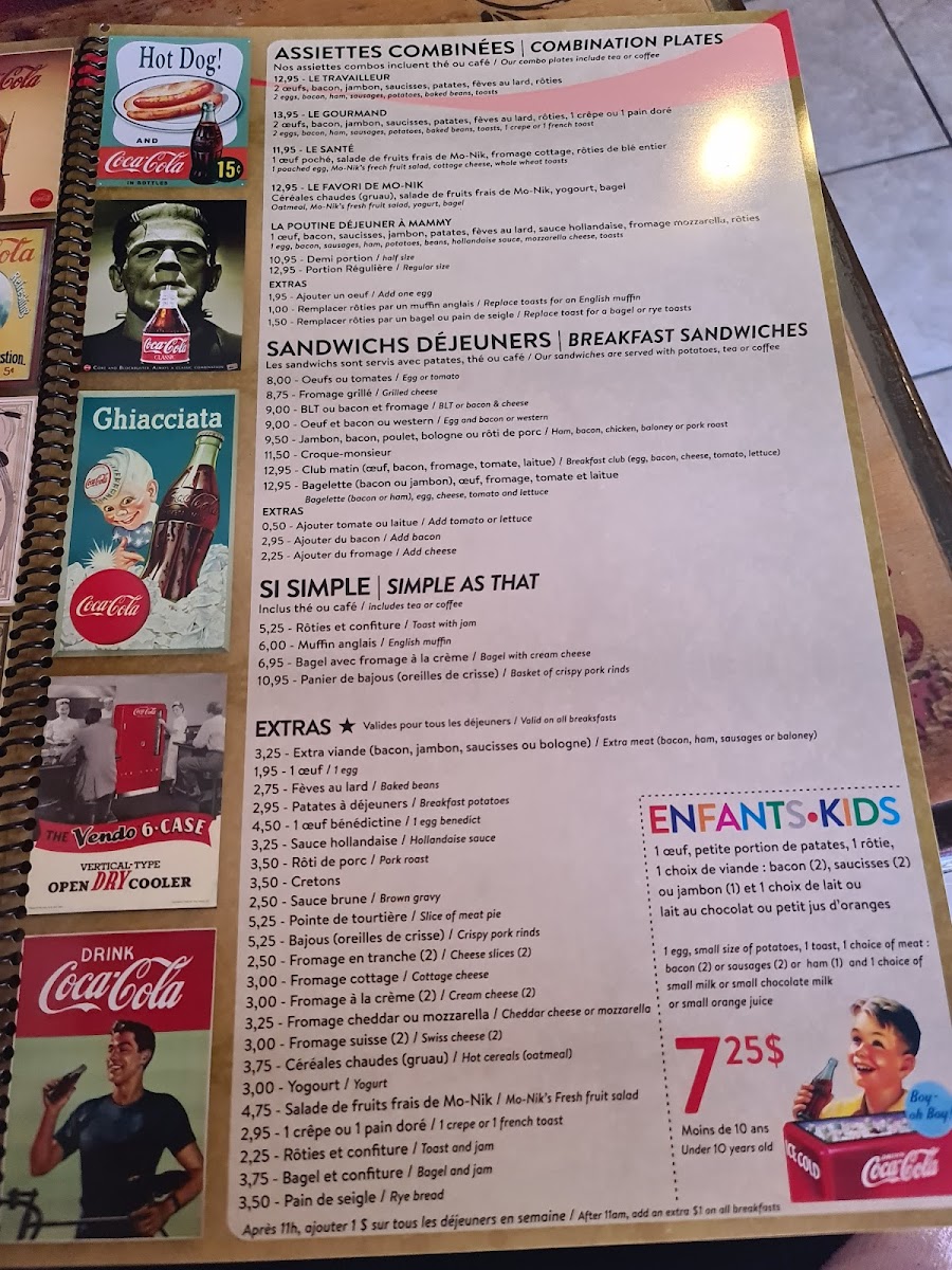 Get ready to tantalize your taste buds with our mouthwatering specialties at Resto Chez Mo-Nik. From the classic Eggs Benedict to the savory Benediction, you'll find a wide array of options to satisfy your cravings. Indulge in our delectable Fruit Pancakes or try the flavorful Benedict Florentine for a true culinary experience. If you're looking for something more hearty, don't miss out on our Bagelette or the 4.99 breakfast special - One Egg Scrambled with Sausage and Bacon, Beans, Toast, Potatoes, and Coffee on the side. Feeling adventurous? Try our unique dishes like the Crêpe Aux Fruits, Assiette Blt, or the Club Sandwich Avec Oeuf. And for the little ones, we have special treats like the Crêpes Mikeymouse. Come visit us at 33 Boulevard Saint-Joseph in Gatineau, Quebec, and treat yourself to a memorable dining experience at Resto Chez Mo-Nik. Bon appétit!